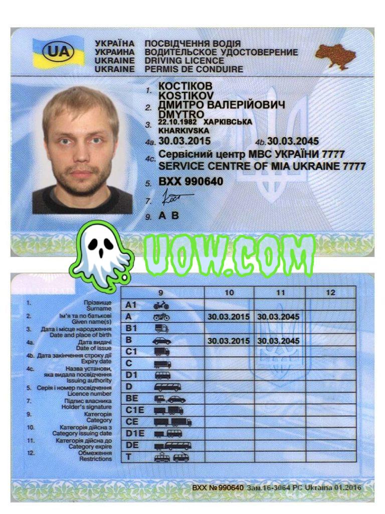 许可证类别(Категорія):如A(摩托车)、B(乘用车)、C(货车)、D(客车)等。