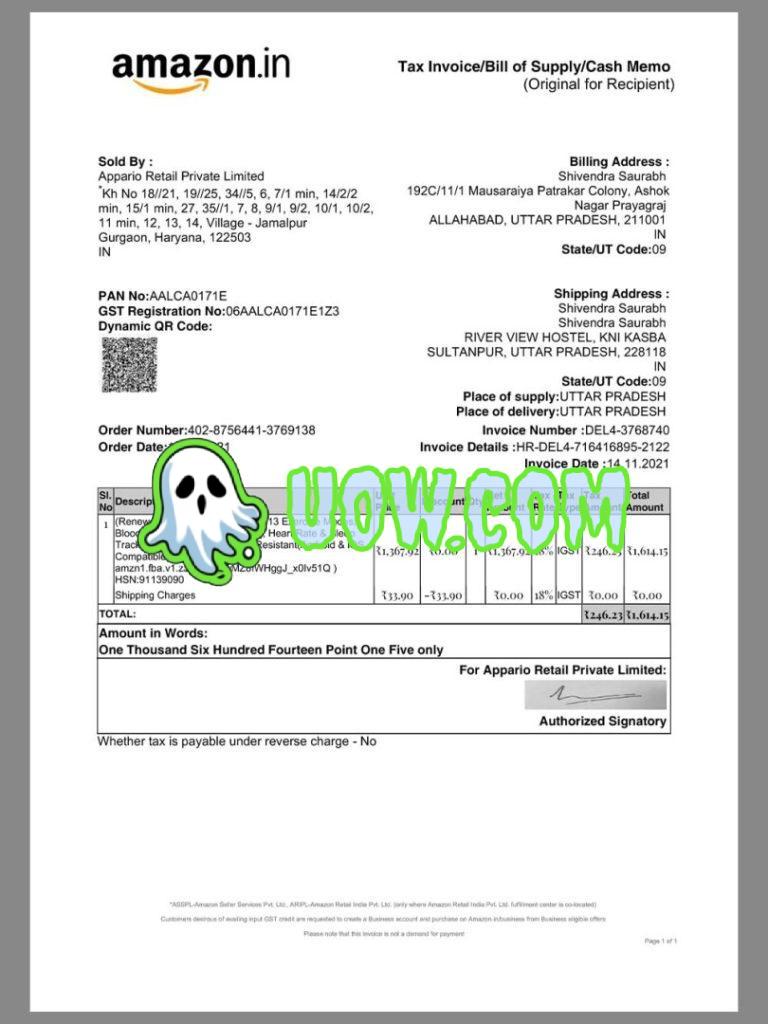 防伪措施:包含唯一发票号和QR码,可通过Amazon.in验证。