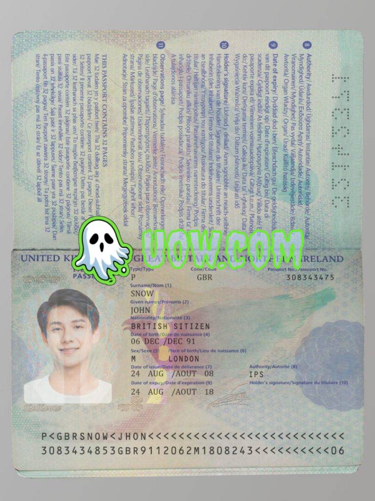 • 设计:酒红色封面,饰有英国皇家徽章,内置生物识别芯片,防伪性能高。
