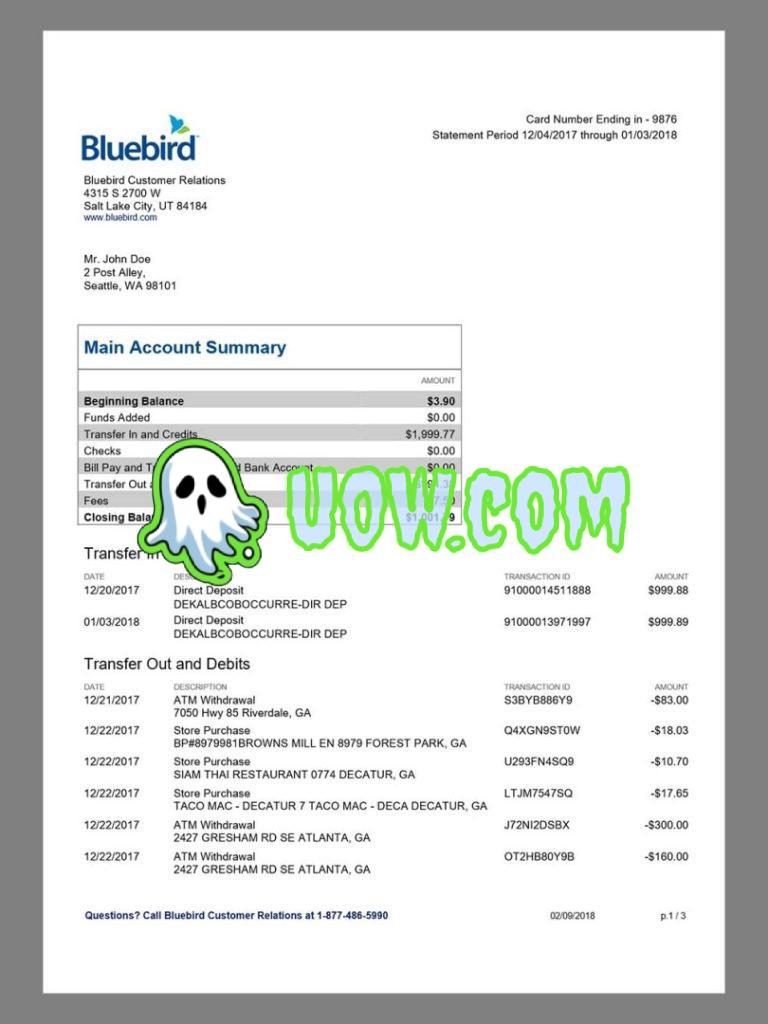 预付卡:BlueBird Prepaid Debit Card,支持ATM取款和在线支付。