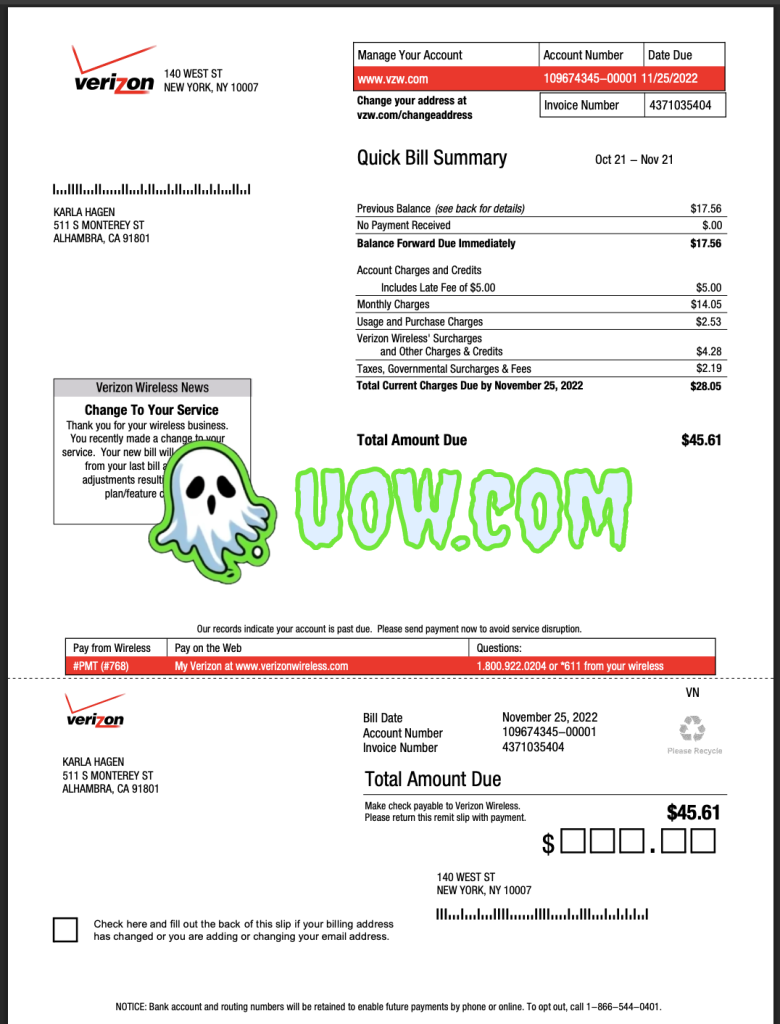 加利福尼亚州 Verizon 账单是由 Verizon Wireless 为加州客户提供的月度移动服务账单。Verizon 是美国最大无线运营商,在加州覆盖洛杉矶、旧金山、圣迭戈等地,提供5G网络、无限数据和家庭套餐。