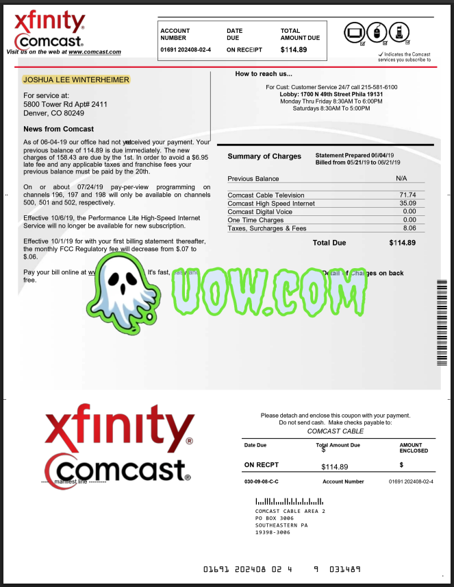 科罗拉多州 Xfinity 账单是由 Comcast(Xfinity 品牌)为科州客户提供的宽带、有线电视和电话服务月度账单。Xfinity 在科罗拉多州覆盖丹佛、博尔德、科罗拉多斯普林斯、奥罗拉等地,提供高速互联网、Xfinity TV 和语音服务。