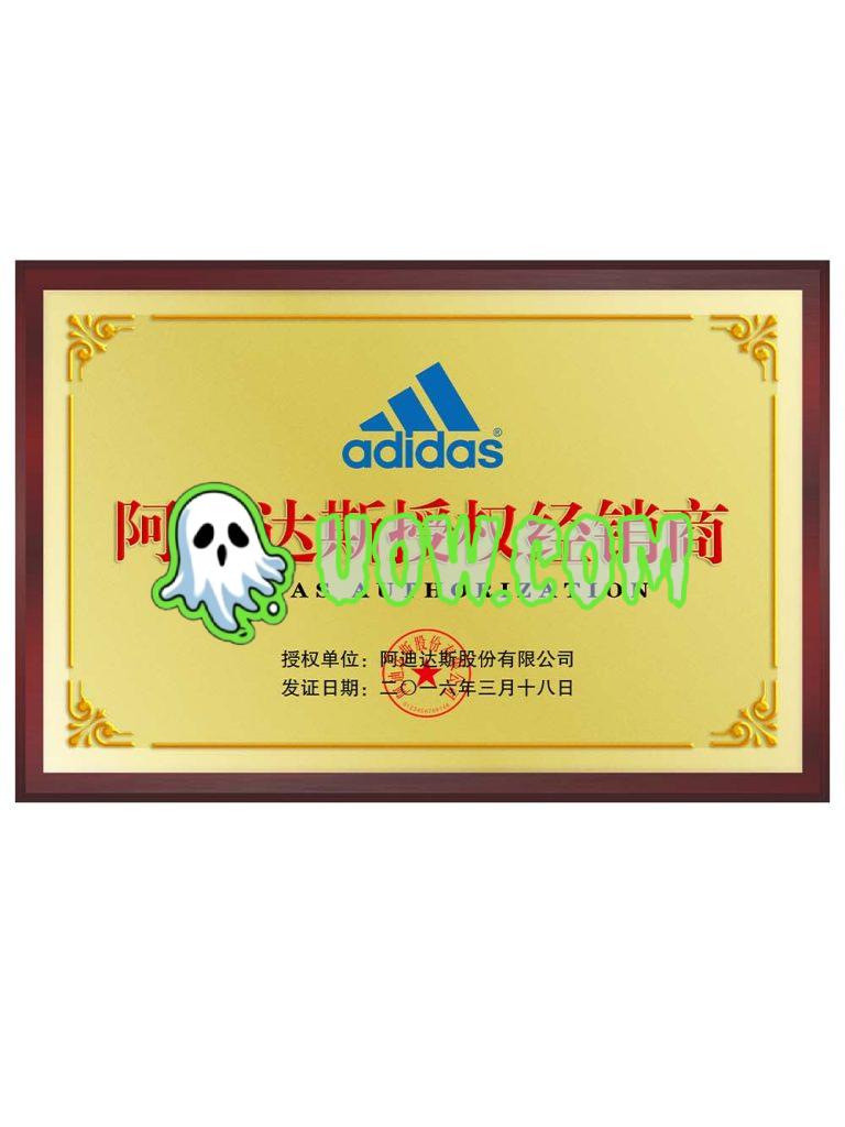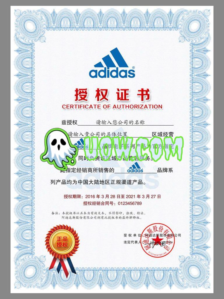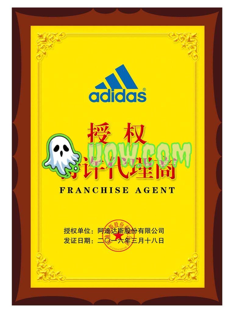 阿迪达斯经销店授权证书