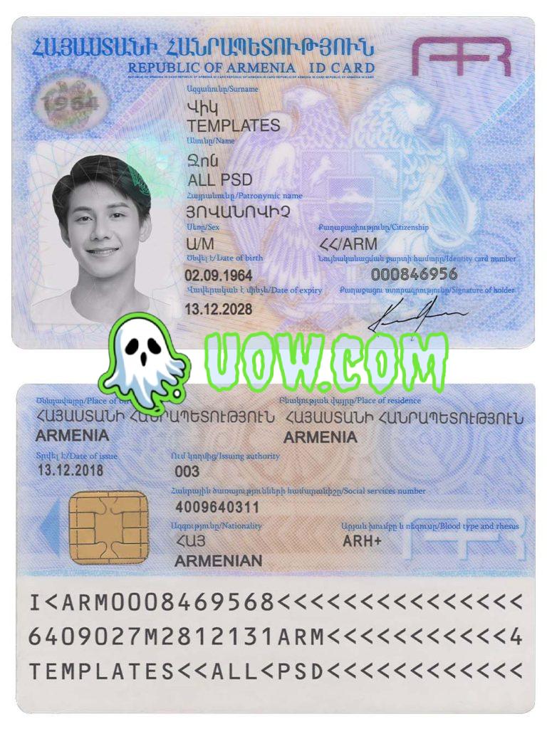 高仿真度:包含亚美尼亚身份证的细节,如个人信息、照片、防伪特征等,逼真还原真实证件外观。