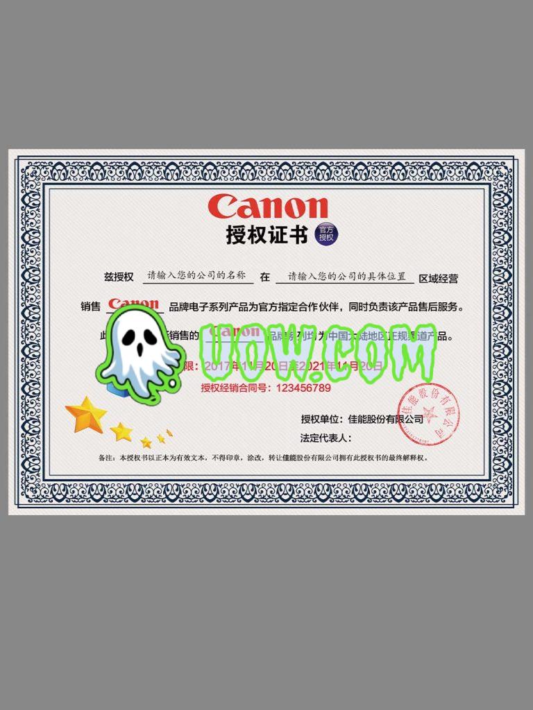 佳能授权证书