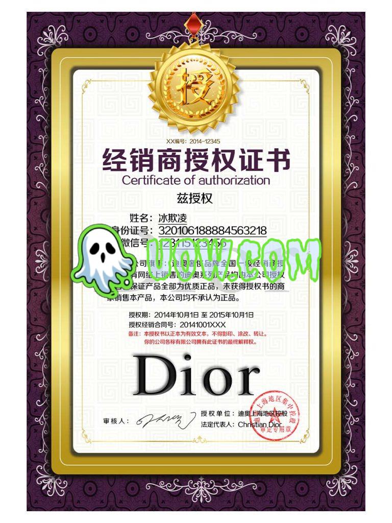 迪奥授权证书是迪奥品牌颁发的文件,用于证明产品的真实性和合法性。它是一份独特的文件,具有以下重要作用:
