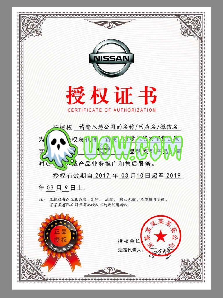 东风日产授权证书