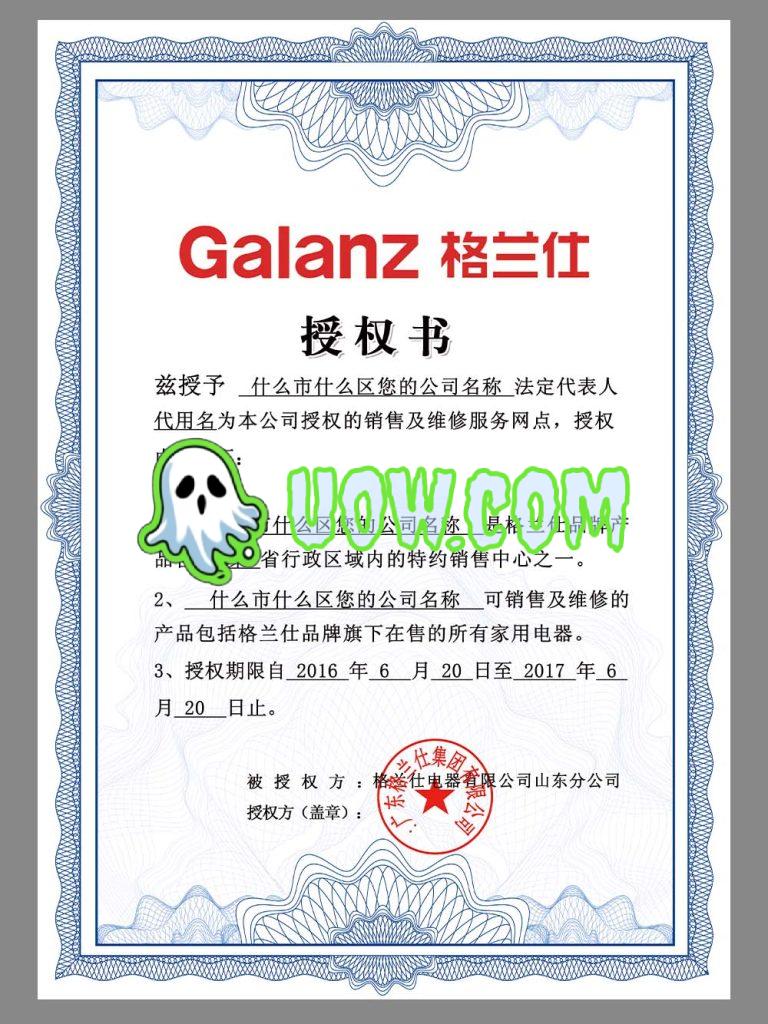 格兰仕授权证书