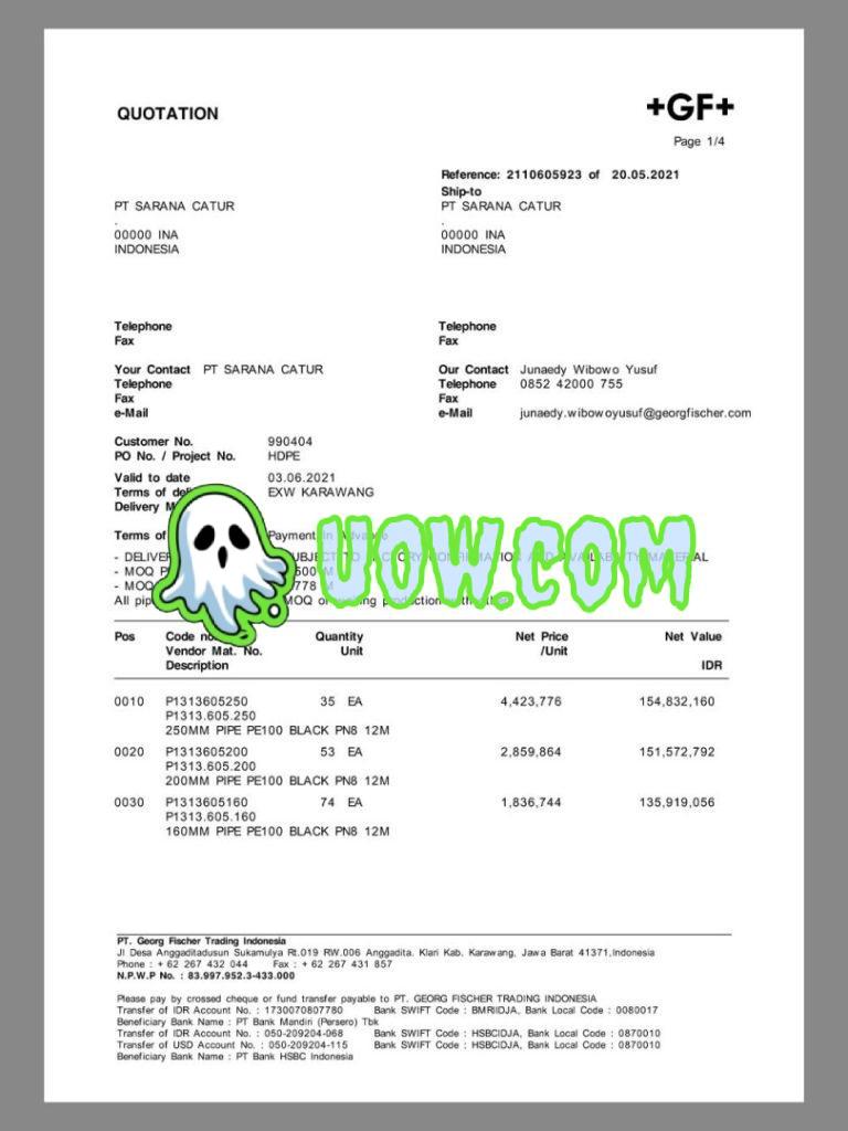 全球适用性:因+GF+在多国运营,其发票通常符合国际标准,可作为地址证明用于银行开户、税务登记或租赁申请。