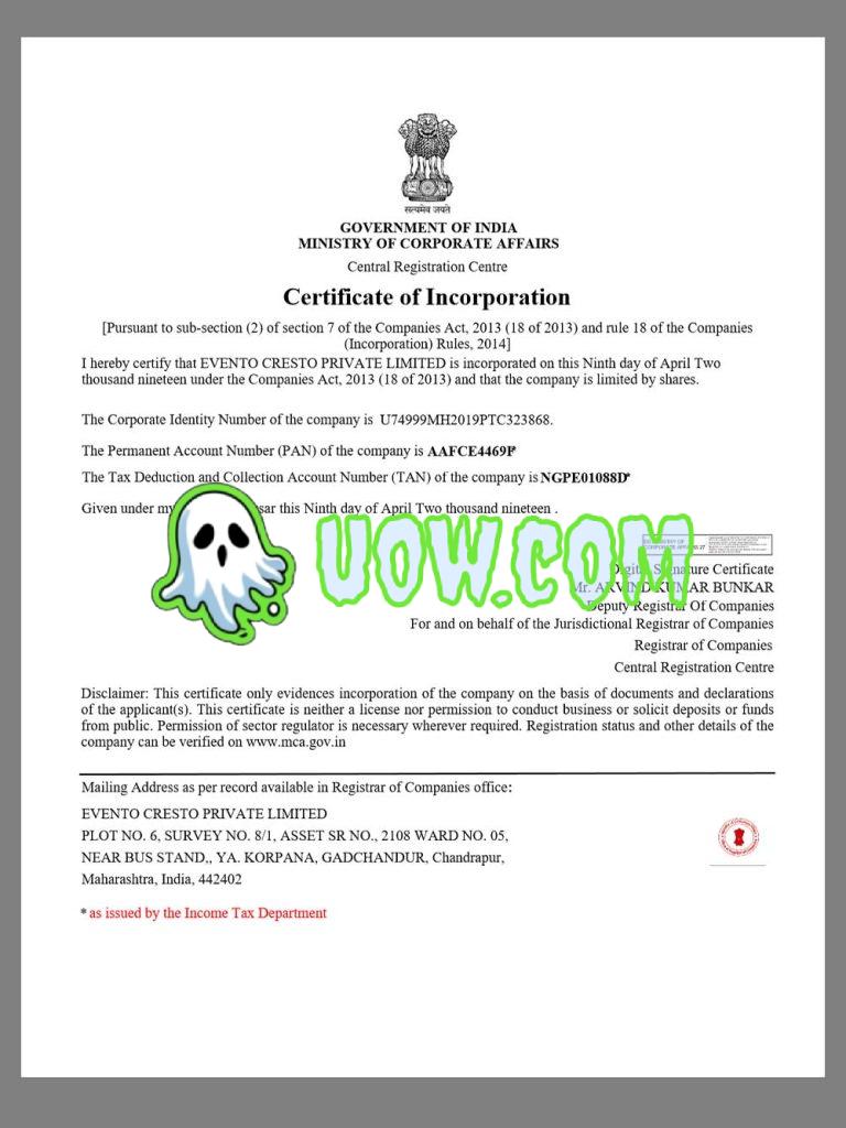 2. 法律效力:由印度公司注册局(Registrar of Companies, ROC)根据《印度公司法》(Companies Act)颁发,确认公司的合法地位,支持其在国内外开展商业活动。