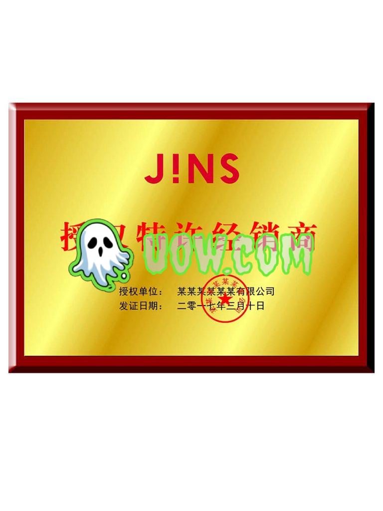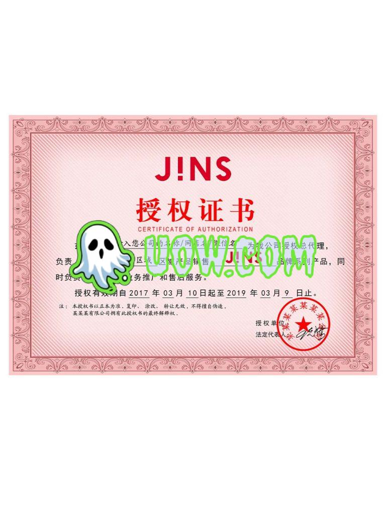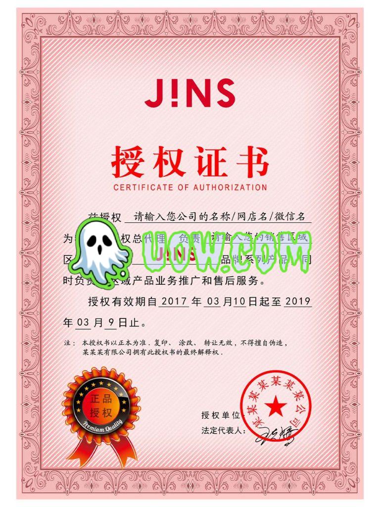 JINS授权证书旨在确保合作伙伴合法、合规地使用JINS的品牌、知识产权或技术,并维护品牌形象和质量标准。具体的授权证书内容和细节可能因授权类型、合作伙伴需求和合作模式而有所不同。