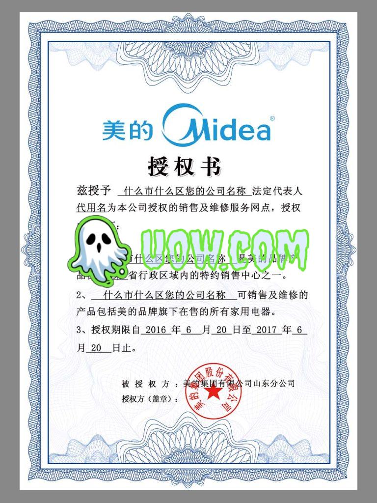 美的集团(Midea Group Co., Ltd.)是一家中国领先的家电制造企业,成立于1968年,总部位于中国广东省佛山市。美的是全球家电行业的龙头企业之一,业务涵盖家用电器、商用空调、机器人及自动化系统,以技术创新和产品质量为核心竞争力。美的授权证书(Midea Authorization Certificate)是美的集团颁发给合作伙伴的正式文件,授予其在特定领域或地区使用美的品牌、技术或知识产权的合法权利,旨在扩大市场份额、保护品牌形象和规范市场秩序。