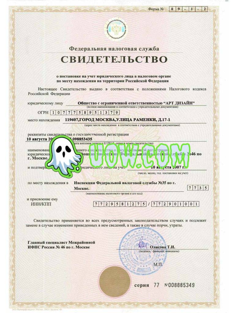 证明公司已在国家统一法人登记册(ЕГРЮЛ)完成备案 -