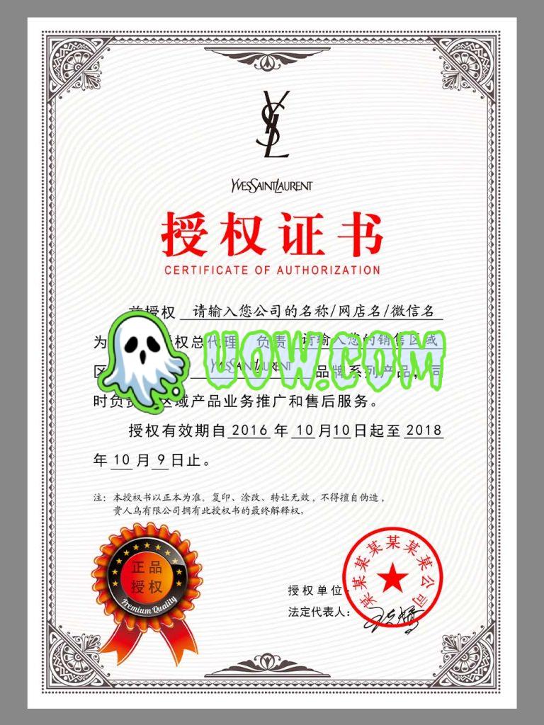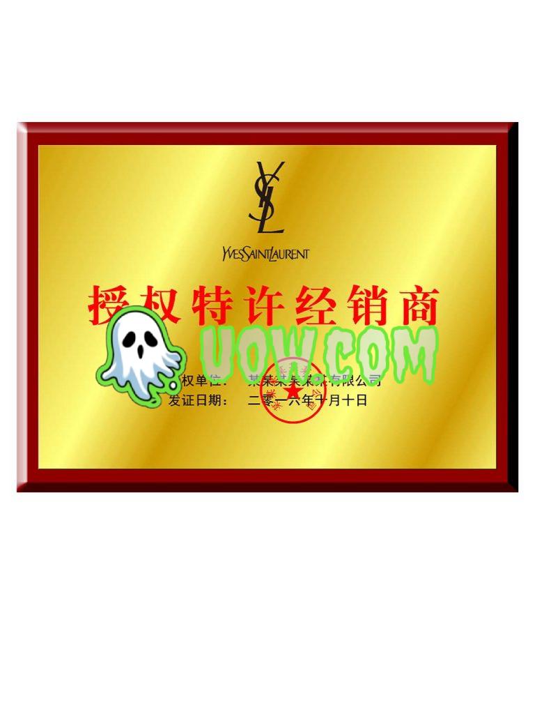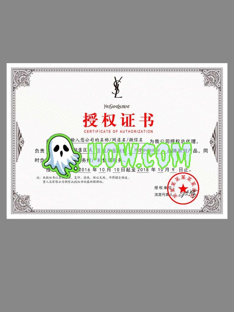 圣罗兰授权证书是圣罗兰品牌授权给其他企业或个人使用其品牌、设计或知识产权的法律文件。通过授权证书,圣罗兰可以将其独特的品牌价值、设计美学和时尚资源授权给其他合作伙伴,共同推动产品创新和市场发展。