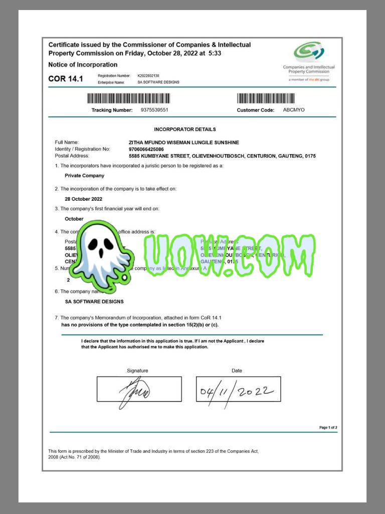 南非CIPC(公司与知识产权委员会)证书是由南非政府机构签发的正式法律文件,用于登记和确认公司与知识产权相关的法定事项及权益。以下为该证书的中文简介: