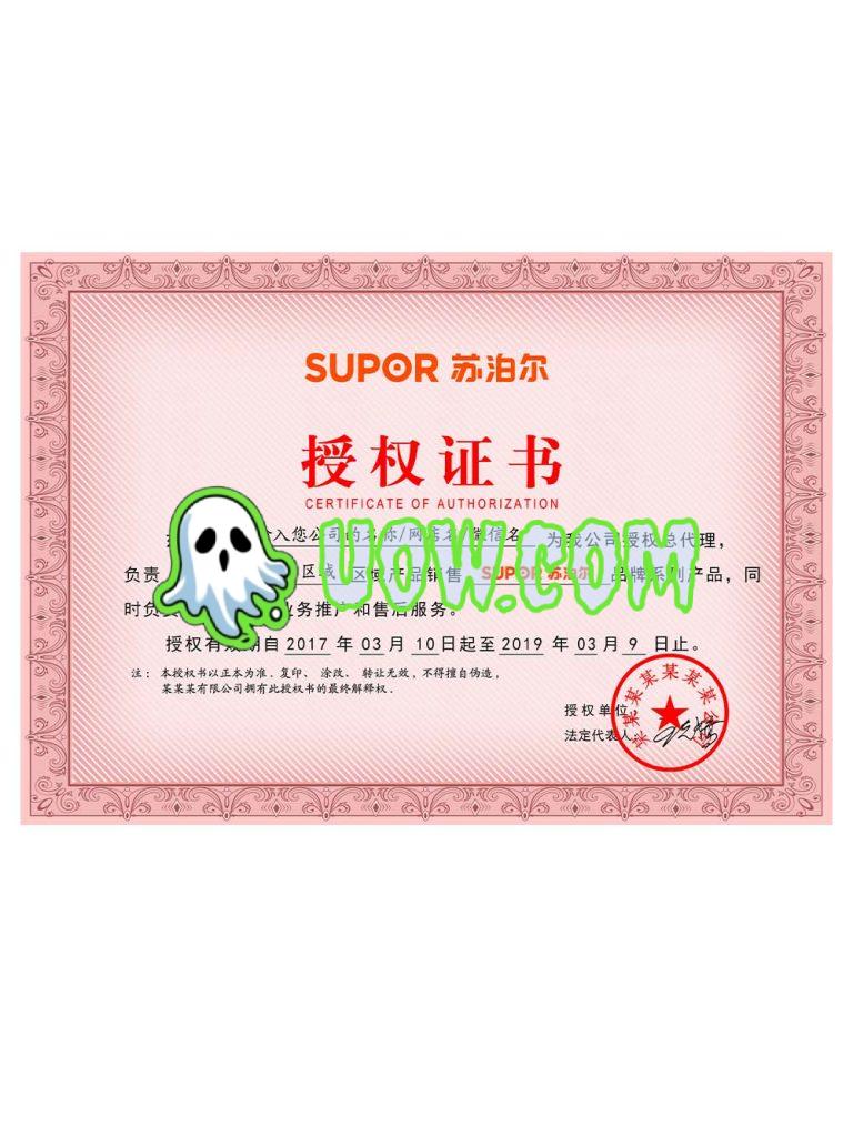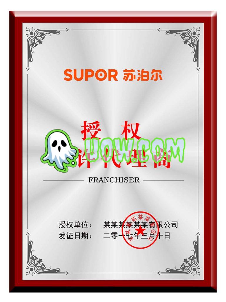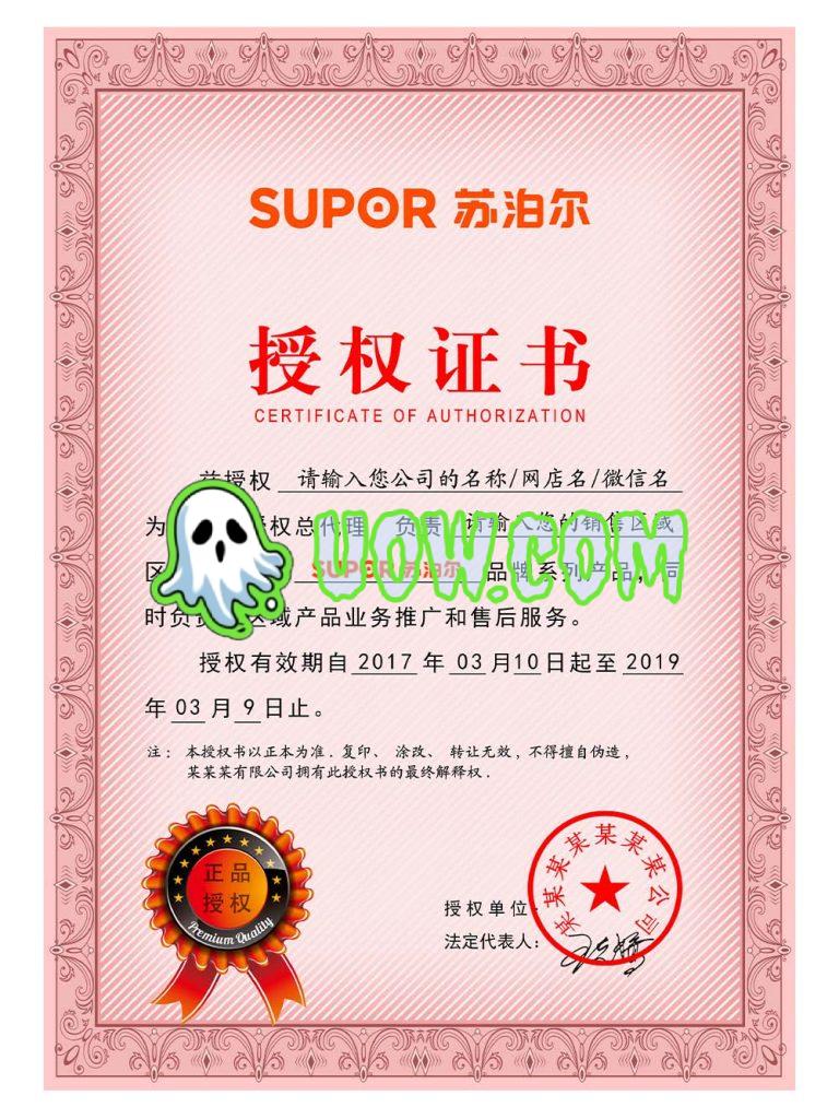 苏泊尔授权证书