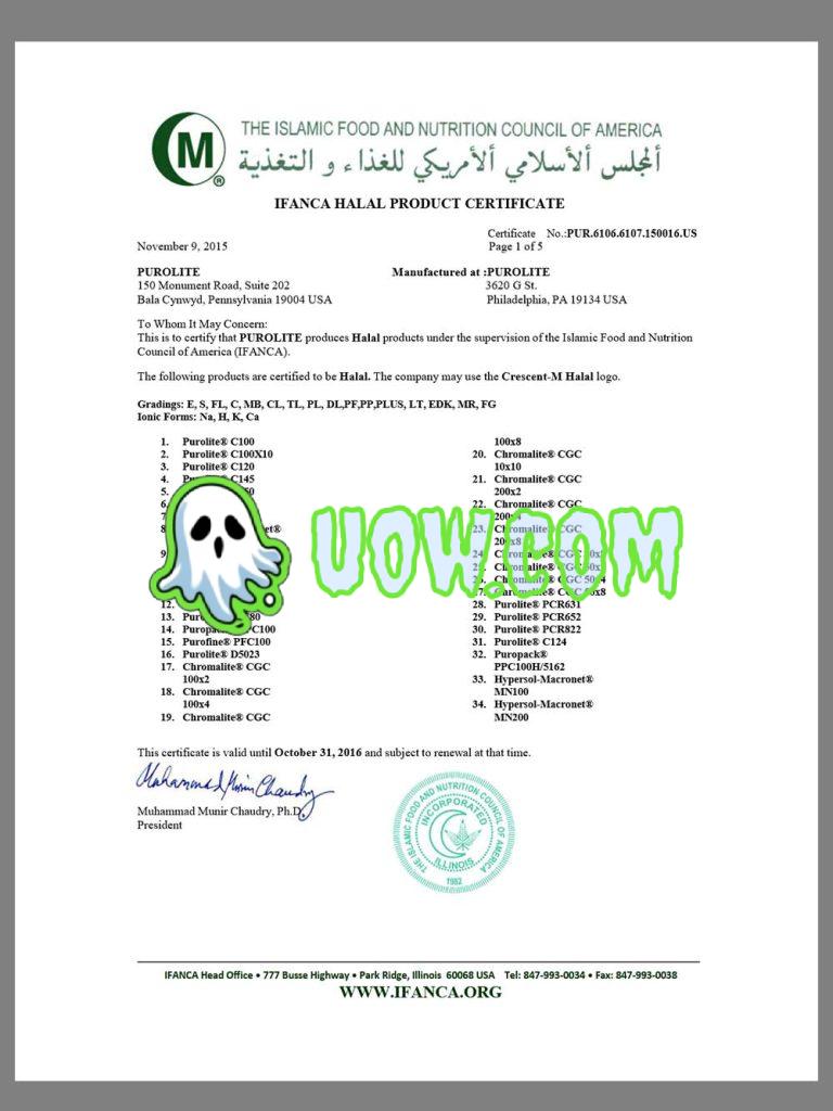 The IFANCA Halal Product Certificate国际清真产品证书pdf模板