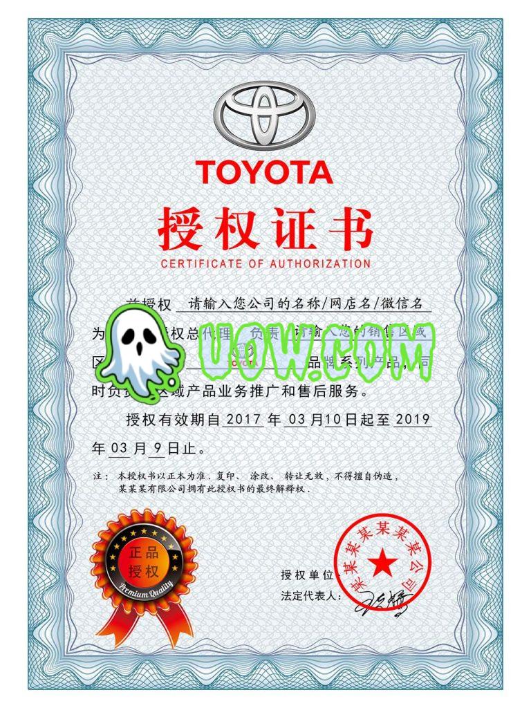 广汽丰田授权证书是广汽丰田与经销商或零售商签订的合同文件,授予其在特定地区销售和推广广汽丰田品牌汽车的权利。证书确保合作合规性和品牌高端形象。