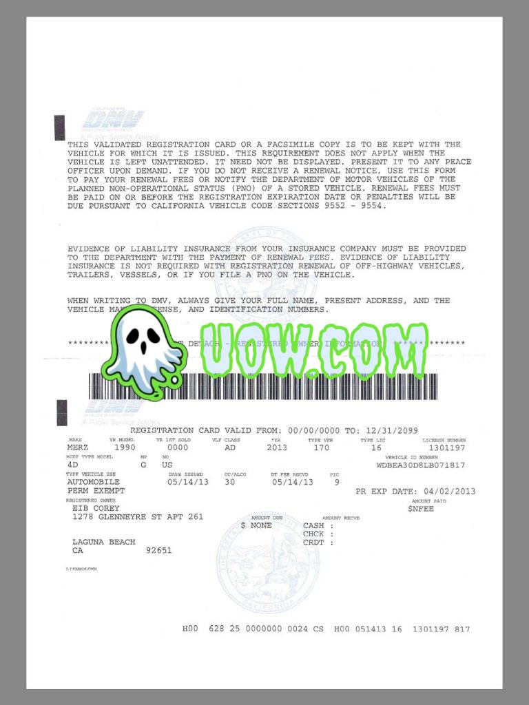 加利福尼亚州机动车辆验验证登记卡(California Vehicle Validated Registration Card),俗称“登记卡”或“Reg Card”,是加州DMV发给每辆车的“合法上路身份证”。没有它,你在405高速被CHP拦下=$280罚单 + 车被拖走!