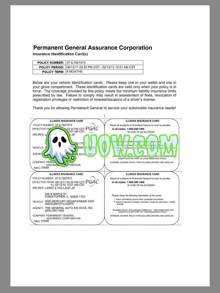 永久通用保险公司(Permanent General Assurance Corporation,简称PGAC)成立于1961年,总部位于美国田纳西州纳什维尔,专注为车主提供多样化、价格亲民的汽车保险。**保险身份证(Insurance ID Card)**是PGAC为每位投保人发放的“公路护身符”,一纸在手,合法上路无忧!