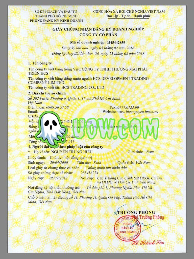 此为越南高清版营业执照PSD模板,所有字段均可编辑。